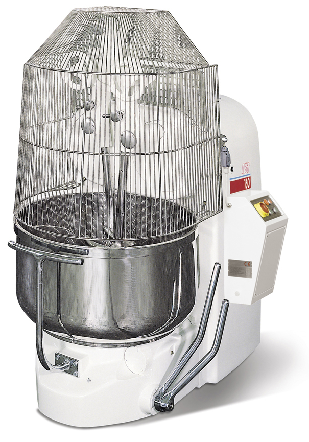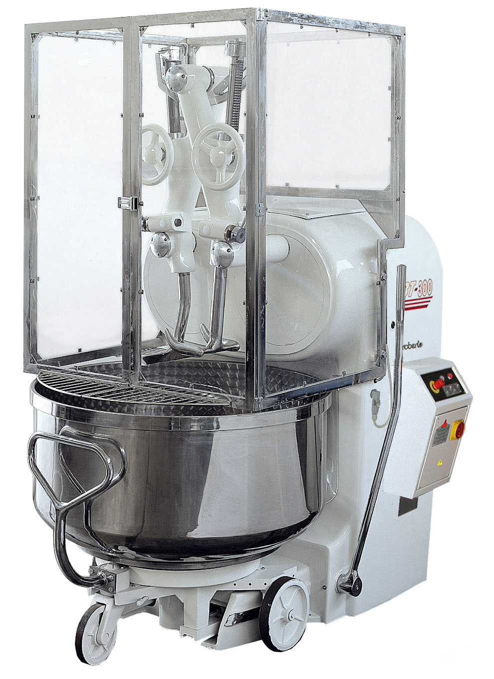 These mixers are used in pastry shops and bakeries to process soft doughs for products such as confectionery, French bread, sandwich bread, breadsticks, etc. The bowl, the full safety guard, and the mixing tool block are made of stainless steel. Gears and linkages operate in an oil bath. Thanks to the technical innovations used in their construction, these models do not require specific maintenance. They process dough quickly and can be supplied with two speeds, with or without timers.